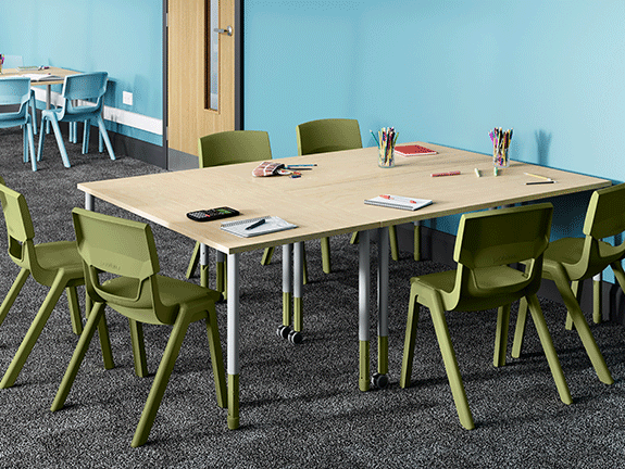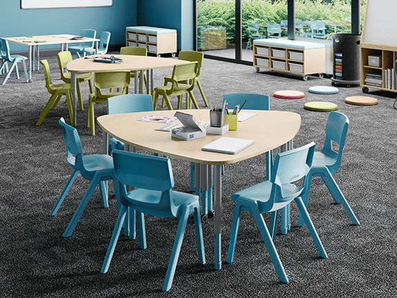 Postura® Max and Postura Max Mini Chairs keep kids comfy and upright, Twist’n’Lock tables adjust to the right height in seconds, and Create-A-Table turns ideas into easy group work - so teachers spend less time managing the room and more time teaching. The result: calmer rooms, smoother transitions and more time where it counts - learning.